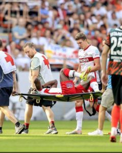 The Nigerian who didn’t finish the game was later stretchered off after 33 minutes.