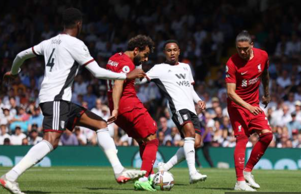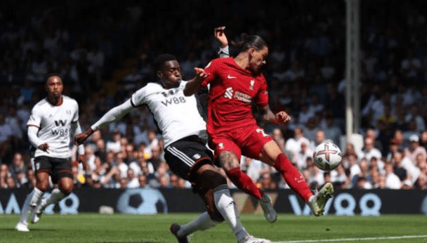 After being so organised for most of the game, the Fulham defence is a bit of a mess here and Liverpool make them pay.The Reds break and lift it towards the penalty spot. Defender Tim Ream can only help it on with his head, and although Darwin Nunez can’t quite latch onto it, it falls for Mohamed Salah to smash it home from close range.